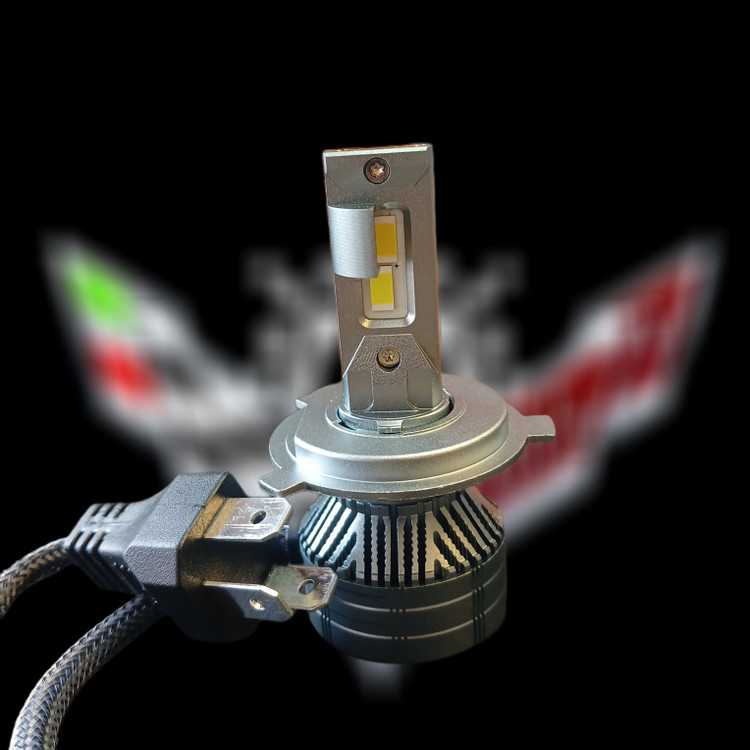 این محصول با پایه H4 داراری دو چیپ csp با کد های رنگیی 4300 برای نور پایین و 6000 برای نور بالا می باشد که نورپاییین با نور نچرال یا ازرایی گه این طیف نوری بهترین رنگ برای بازدهی بیشتر در بارندگی مه برف و هوای طوفانی میباشد که با این طیف رنگی عالی بدون کوچک ترین افت دید میتواد در راننگی به شما عزیزان کمک بسزایی بکند . چیپ نور بالا با رنگ سفید و قدرت نوری عالیی که دارد میتواند مصافت بسیاری را برای شما روشن بکند با نصب اصولی این محصول بدون اختشاش نوری وبهمریختگی خط کات شما نوری یک دست وعالی را دریافت میکنید.